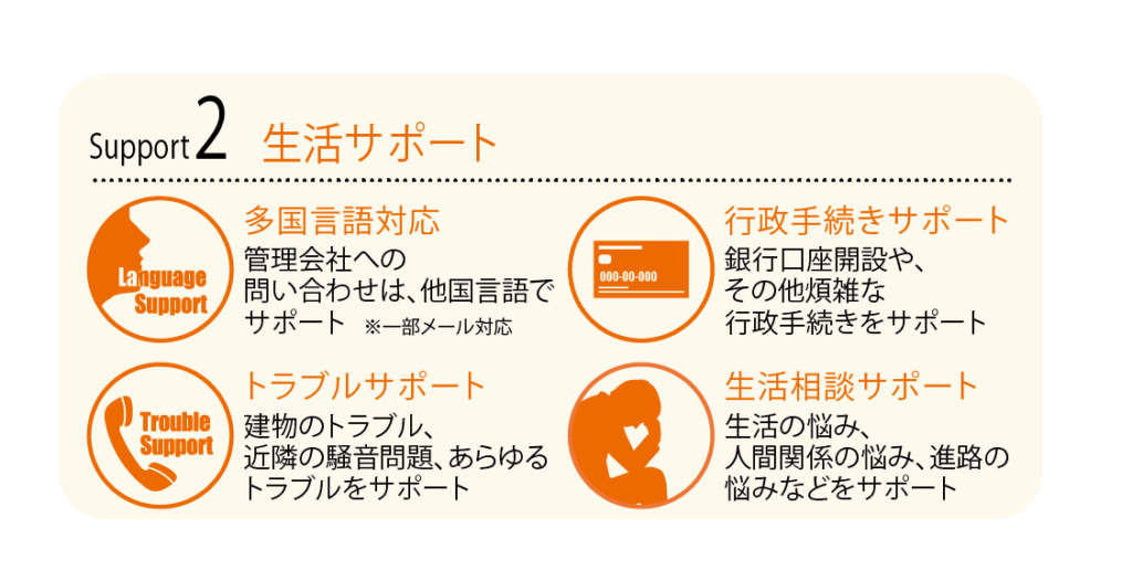 入居対象外国人の属性として留学生、労働者、ファミリーなど様々です。