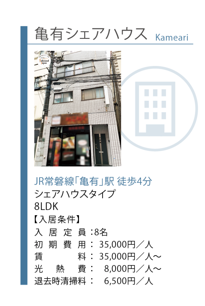 競争⼒を失った物件を借上げ、外国⼈⽣活サポート付き住宅として運営します。